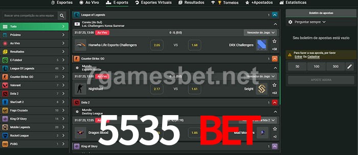 O 5535 Bet oferece uma grande seleção de opções de apostas em e-sports com probabilidades competitivas